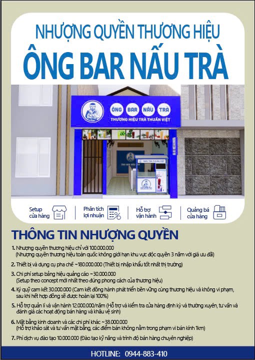 Liên hệ ngay: Để biết thêm chi tiết về chương trình nhượng quyền, vui lòng liên hệ hotline: 0944-883-410 hoặc truy cập website chính thức của Ông Bà Nấu Trà.